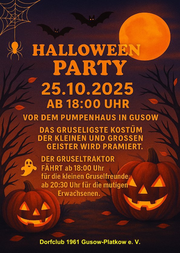 Halloweenparty am 25.10.2025 ab 18 Uhr in der Schlossstr. in Gusow.