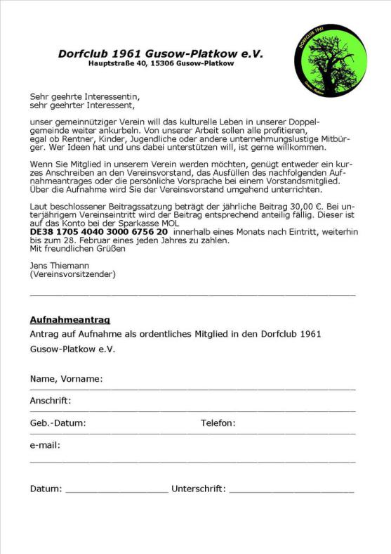 Bitte drucken Sie den Mitgliedsantrag aus und senden Sie diesen an: